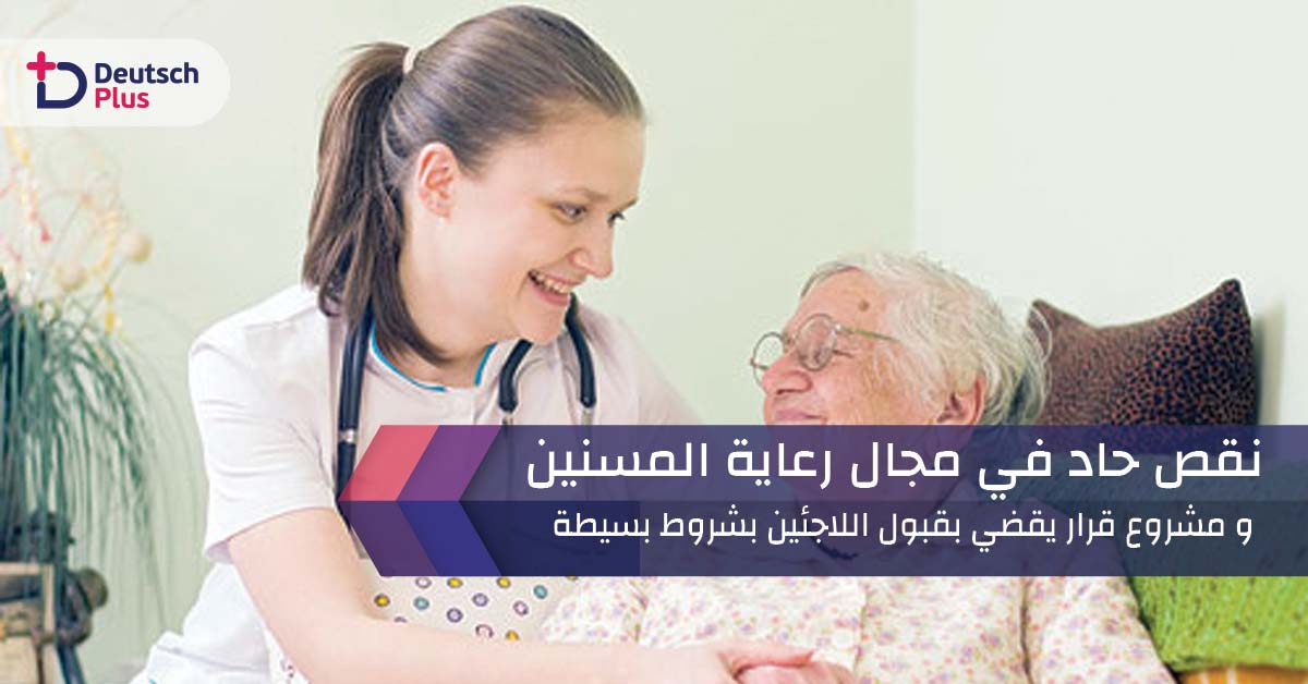 تحتاج ألمانيا للمزيد من اليد العاملة في مجال رعاية كبار السن حيث يعاني قطاع رعاية المسنين في ألمانيا من نقص ملحوظ جزئيا في عدد العاملين المؤهلين لذلك نشأت مشاريع رائدة لجذب اللاجئين وترغيبهم للعمل في هذه المهنة، بخطة شاملة تتضمن أيضا تحسين لغتهم الألمانية وتدريبهم على أصول المهنة.