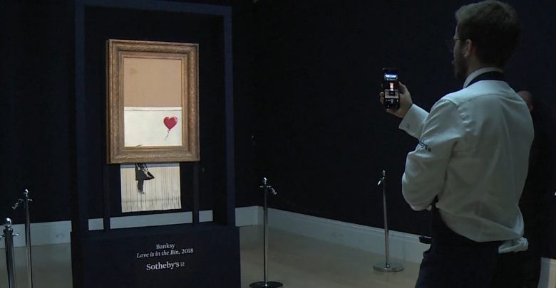 وتحولت هذه اللوحة لواحدة من أشهر الأعمال الفنية بالعالم في ثواني قليلة اعتمادا على خدعة مبتكرة، حيث تناثرت اللوحة، ودمرت جزئيا بعد أن تم الإعلان عن بيعها في مزاد بمدينة لندن.